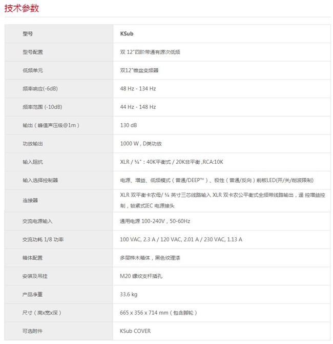 在低頻擴展和增強方面,KSub 能完美地同其他 K 系列產(chǎn)品進行搭配。 K8、K10 和 K12 都具有可選高通濾波器,可與重低音揚聲器搭配使用。 KSub 包含一個固定低通濾波器,因此可以接收全頻域輸入。
